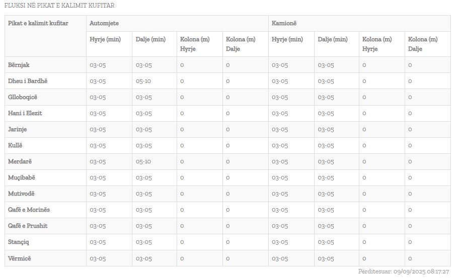 Ndërkaq, për të hyrë në Kosovë nuk ka aspak pritje, pasiqë nevojiten 3-5 minuta për të kaluar në këto pika.