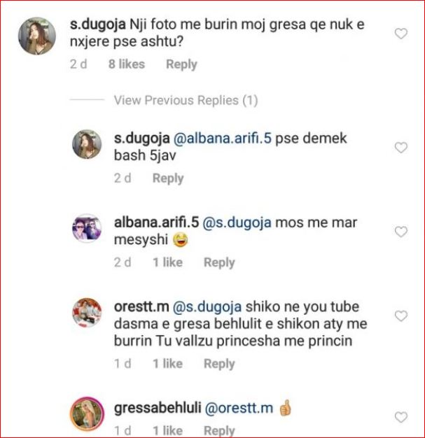 Një prej tyre e ka pyetur për bashkëshortin dhe përgjigjen, Gresa ka preferuar ta japë indirekt.