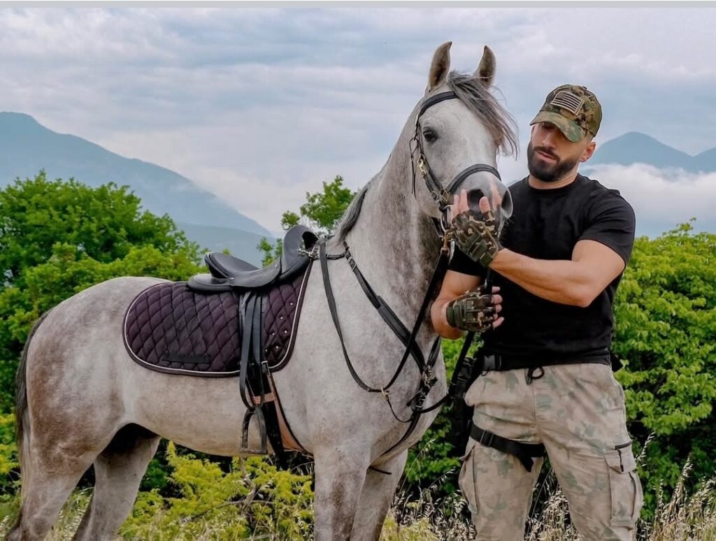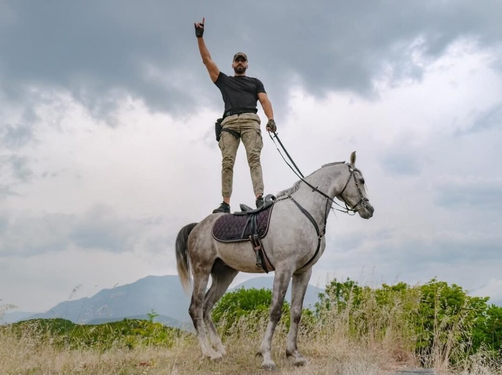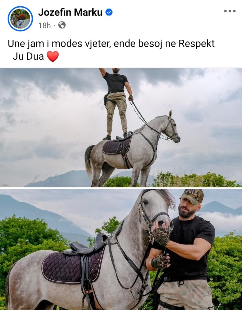 Në një postim të fundit në Instagram, ai shfaqet i hipur mbi një kalë në mes të natyrës, i veshur thjesht, por me prezencë që flet.