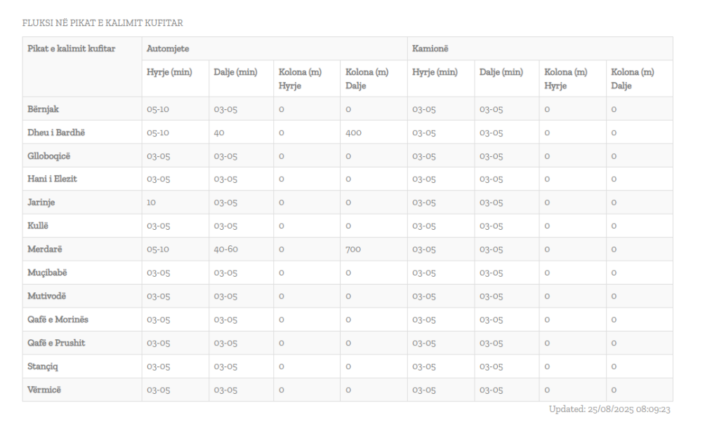 Në të gjitha pikat e tjera kufitare situata paraqitet e qetë me pritje mes 3 deri në 5 minuta dhe pa kolona.
