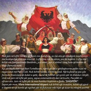 “Nuk jam në luftë me ata që flasin me metafora, as me ata që mbulojnë mashtrimin me buzëqeshje, e as me mashat. Lufta ime nuk ka emra, por ka kuptim. Lufta ime është me Compartment Berninin, jo si emër, por si simbol i asaj bote që kërkon të blejë flamurin tonë.