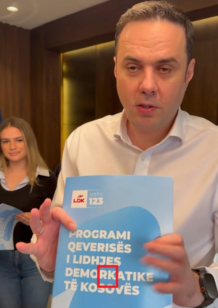 Kryetari i Lidhjes Demokratike të Kosovës (LDK), Lumir Abdixhiku, ka prezantuar planprogramin e subjektit të tij politik. Ajo çfarë vërehet, krahas entuziazmit për ta prezantuar, është edhe një gabim drejtshkrimor.