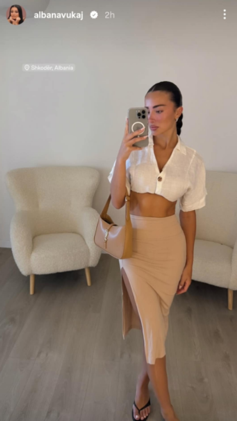 Në këtë kombinim në veshje, Alba po dëshmon se ka shumë shije.