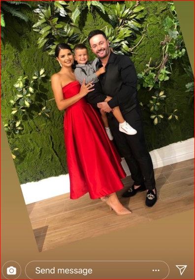E veshur me një fustan të kuq, Andrra duket për bukuri derisa përkrahë saj janë dy personat më të dashur në jetën e saj.