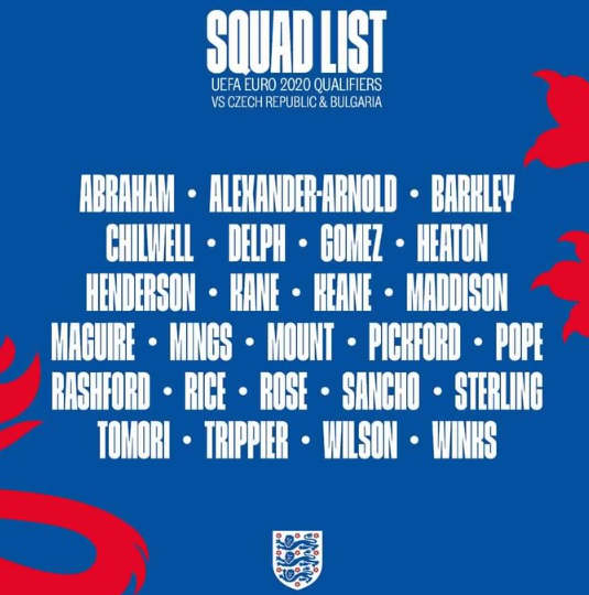 Në listën e publikuar nga Southgate janë parë edhe disa emra të rinj, si ata të Tammy Abraham, Mason Mount e Tomori.