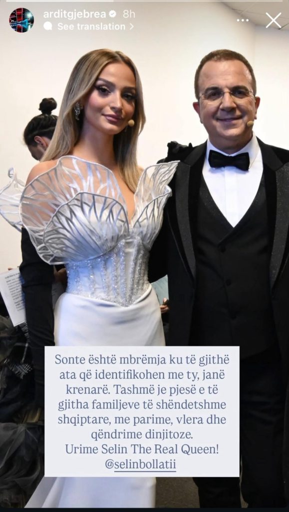 Ardit Gjebrea ka uruar Selina Bollatin pas fitores, duke e cilësuar si një krenari për publikun.