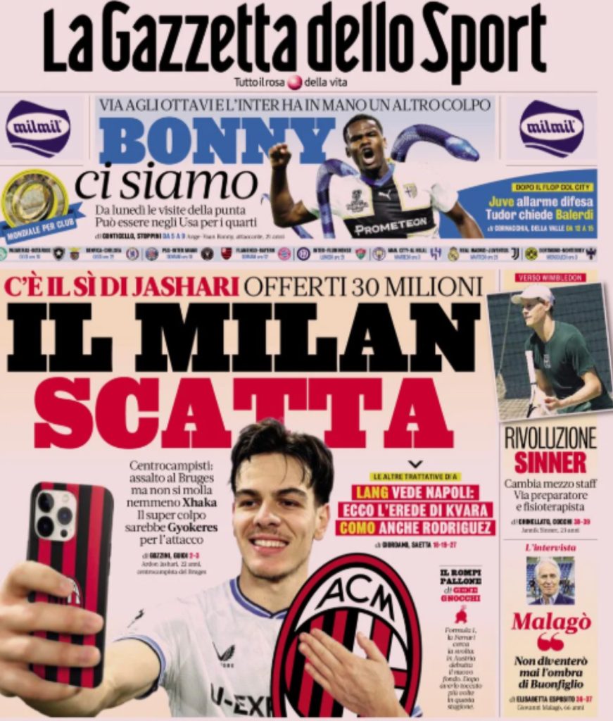 Sipas gazetës italiane, Jashari ka thënë “PO” për kalimin te kuqezinjtë, ndërsa drejtuesit e Milanit tashmë kanë nisur ofensivën për të bindur skuadrën belge të Club Brugge, që zotëron kartonin e tij. Ai shihet si një nga përforcimet kyçe në mesfushë për sezonin e ardhshëm.