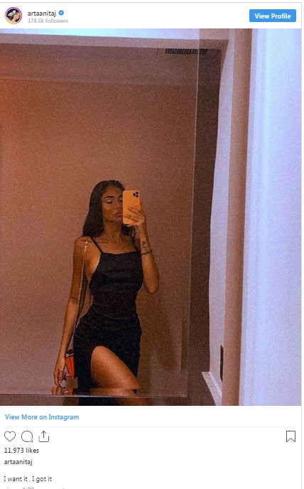 “E dua, e kam marrë”, ka shkruar ajo. Ndryshe Arta vazhdon të jetë aktive në këtë rrjet social dhe shpesh publikon foto të tilla.