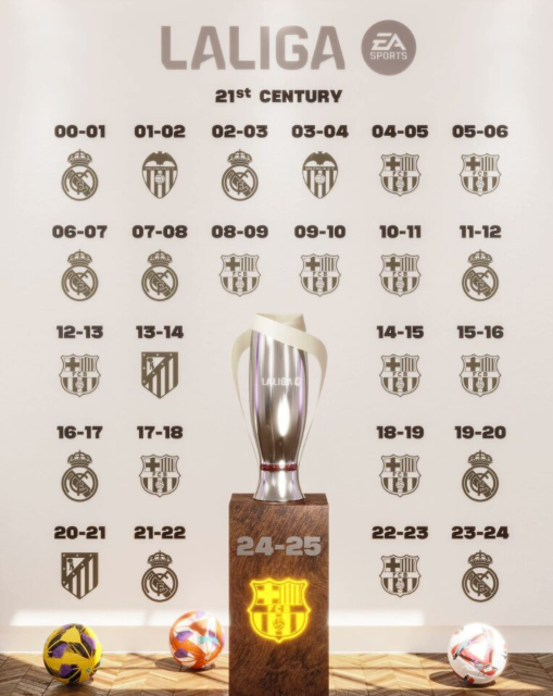 Real Madridi në anën tjetër e ka fituar La Ligan nëntë herë në shekullin e ri.