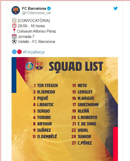 16 vjeçari vuan nga një lëndim i gjurit, dhe nuk është ftuar fare për këtë ndeshje, përcjell lajmi.