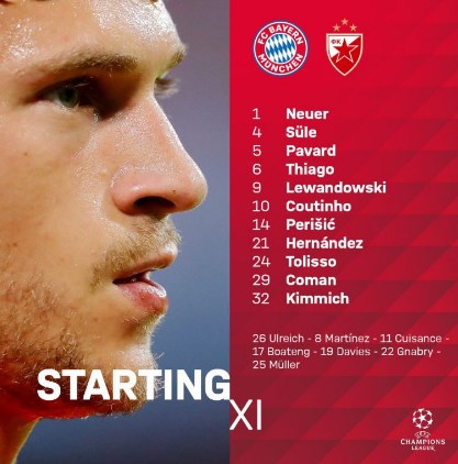 Formacioni zyrtar i Bayernit për ndeshjen ndaj Zvezdas.