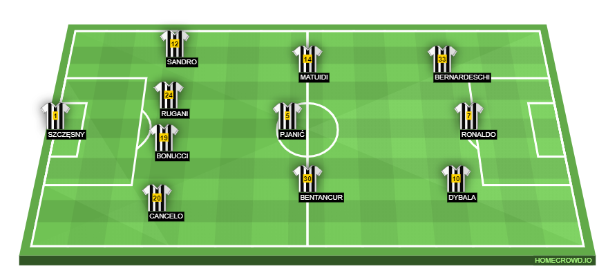 Juventus në këtë ndeshje do të jetë pa, Martin Caceres, Girgio Chiellini, Mario Mandzukic dhe Mattias Perin, që janë të lënduar.