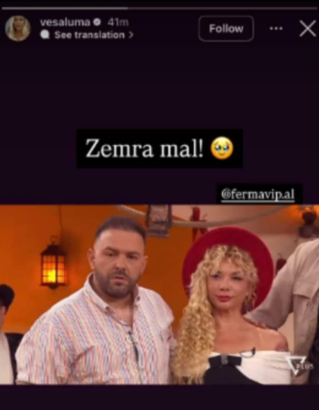 Në një postim të fundit në Instagram, Vesa Luma shprehu gëzimin dhe krenarinë e saj për faktin që Big Basta u shpall fermeri më i votuar nga publiku për të qëndruar në garë. Në një format ku çdo javë publiku vendos për fatin e konkurrentëve, përkrahja e publikut për Big Bastën ka qenë e dukshme, dhe Vesa nuk e ka lënë pa e komentuar këtë sukses me emocion.