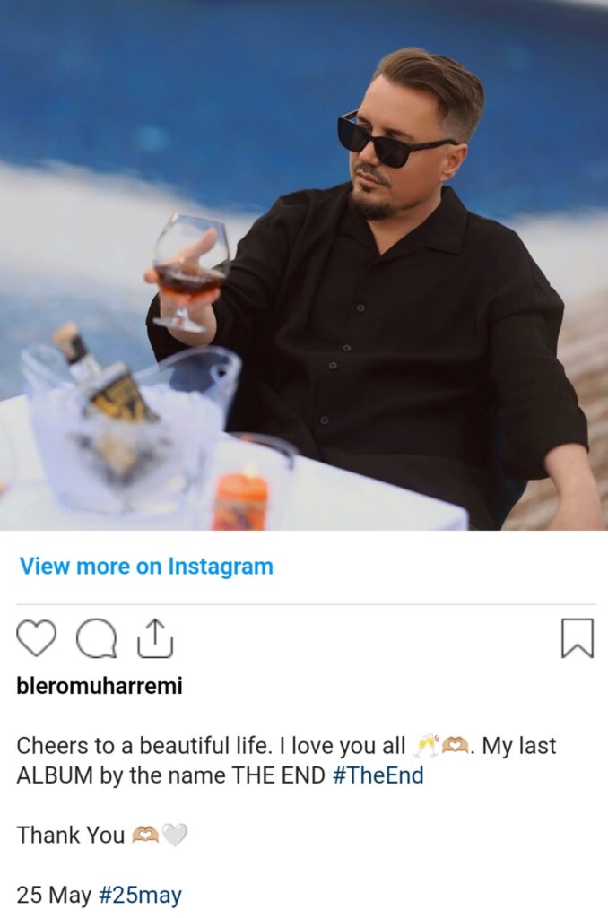 Përmes një postimi në Instagram, Blero ka falënderuar të gjithë përkrahësit, duke thënë se albumi i tij i fundit do të quhet “The End”, shkruan IndeksOnline.
