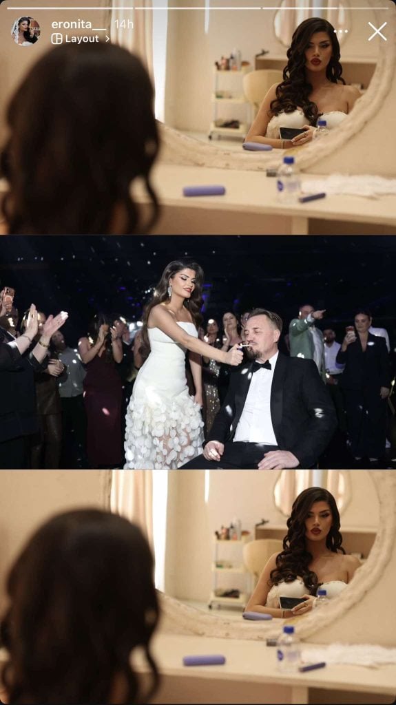 Ajo ka ndarë vazhdimisht fragmente nga dasma, momente intime, detaje nga festa dhe prapaskena që kanë zgjuar interes të madh te ndjekësit.