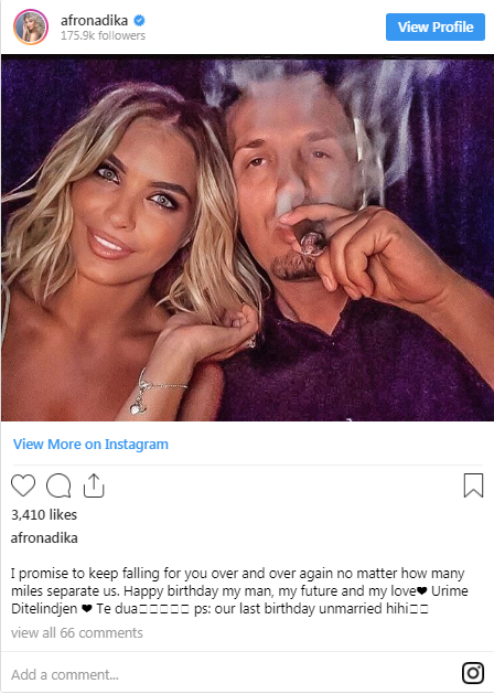 “Të premtoj që do të bij për ty sërish pa marrë se sa kilometra na ndajnë neve. Urime ditëlindjen burri im, e ardhmja ime dhe dashuria ime. Ditëlindja e fundit si të pamartuar”, ka shkruar mes të tjerash ajo.