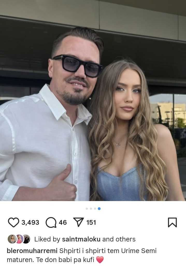 “Shpirti i shpirtit tim, urime semimaturën. Të do babi pa kufi”, ka qenë përshkrimi që i ka vënë postimit.