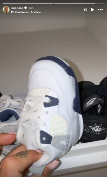 Në pamjen e shpërndarë në profilin e saj zyrtar, Loredana shihet teksa reklamon një palë këpucë të vogla për fëmijë – specifikisht, të gjinisë mashkullore.