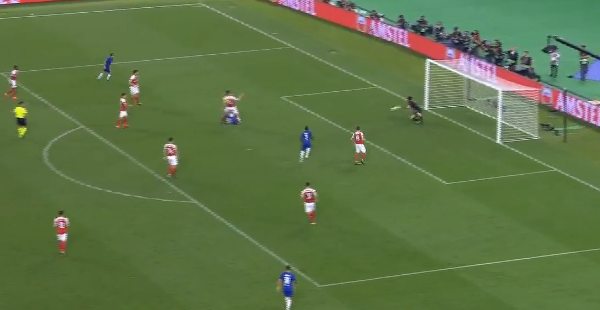 Chelsea ka kaluar në epërsi kundër Arsenalit, në finale të Ligës së Evropës, e cila po zhvillohet momentalisht në Baku.