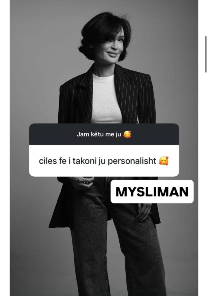 E pyetur nga ndjekësit “Cilës fe i takoni ju personalisht?”, Blerta është përgjigjur shkurt dhe qartë: “Myslimane”.