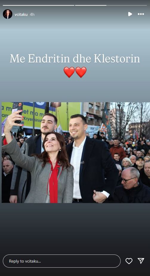 “Me Endritin dhe Klestrotin”, ka shkruar Çitaku, duke shtuar kështu edhe dy zemra të kuqe.