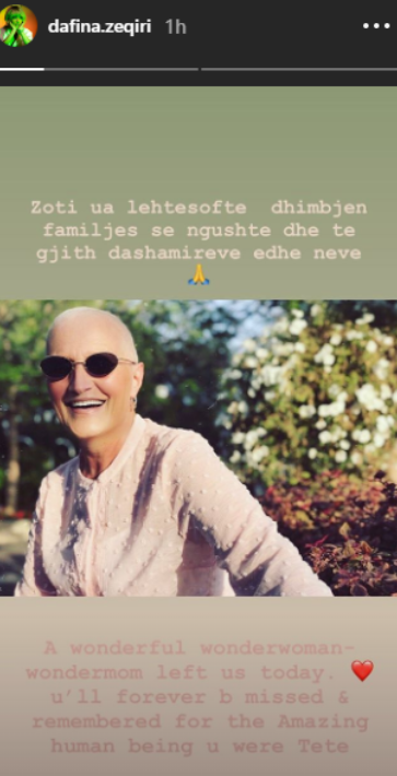 “Zoti ua lehtësoftë dhimbjen familjes së ngushtë dhe të gjithë dashamirëve edhe neve”, ka shkruar ajo.