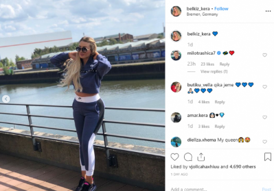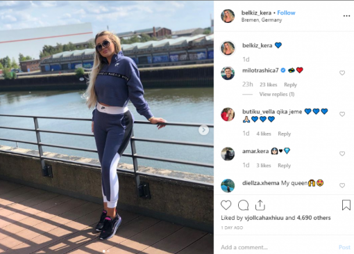 Belkizi aktive po vazhdon të jetë ende në instagram, ku numëron 27 mijë e 800 ndjekës. Dje bukuroshja e Milotit ka publikuar dy imazhe të bukura, në të cilat shihet me veshje sportive.