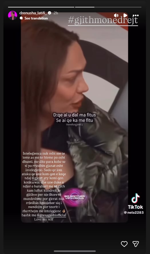 Në postimin e saj në rrjetet sociale, Latifi ka folur hapur për sfidat dhe mësimet që ka nxjerrë gjatë qëndrimit në reality shoë, duke theksuar rëndësinë e inteligjencës jo thjesht si një dhunti e lindur, por si një aftësi që të ndihmon të kuptosh dhe të parashikosh rrjedhën e ngjarjeve para se të ndodhin.