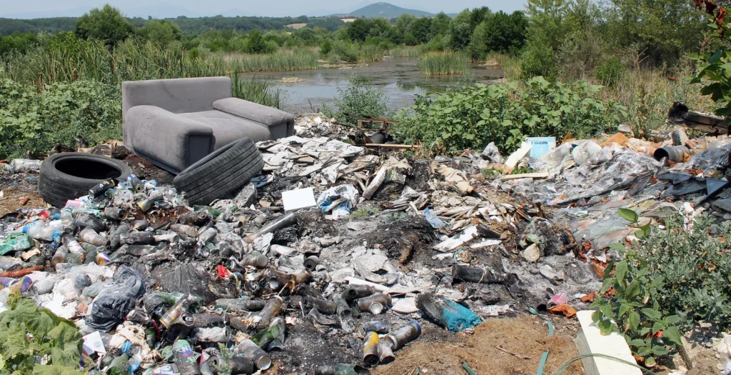 Përveç kësaj, aty janë hedhur mbeturina nga më të ndryshmet, si materiale plastike e qelqi, kanaçe, materiale të drurit, shtylla betoni dhe materiale të ndryshme inerte. Në këtë vend janë hedhur qindra goma, disa buzë lumit, e një pjesë e madhe në lumë. Edhe një divan qëndron sipër mbeturinave.