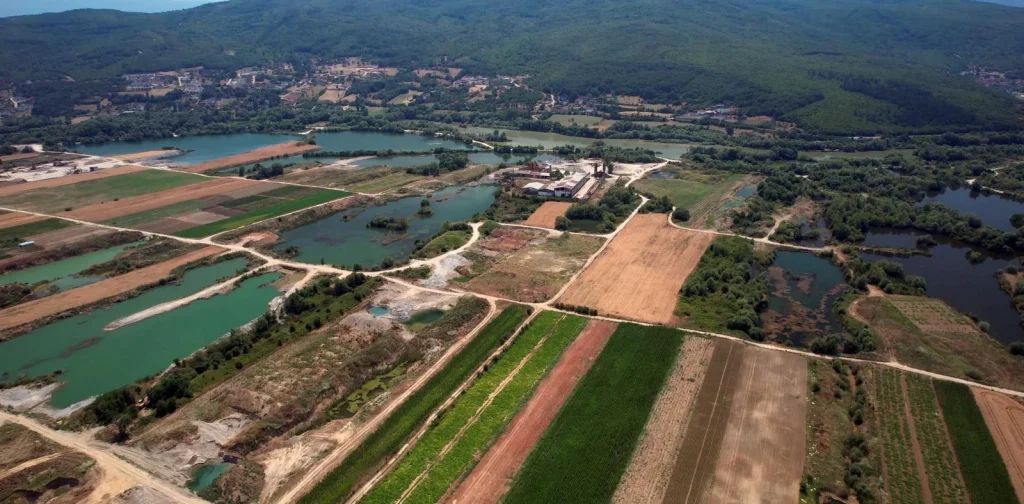 Inerte këto të përziera më tutje me grumbuj të mbetjeve plastike, mbetjeve të ndërtimit dhe masiveve të gomave të makinave. Pak më tutje, disa shtëpi private qëndrojnë përbri, e në luginë disa bagëti të tjera kullosin pa u shqetësuar nga ndotja.