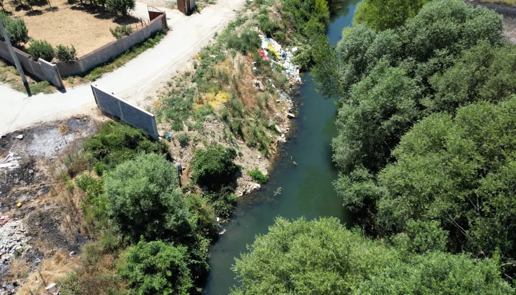 Ky nuk është një lumë. Është kanalizim i madh, i hapur, që shkarkohet drejtpërdrejt në Drinin e Bardhë. Kur e vizituam këtë lokacion gjatë verës, sasia e ujit ishte më e pakët sesa në stinët e tjera.
