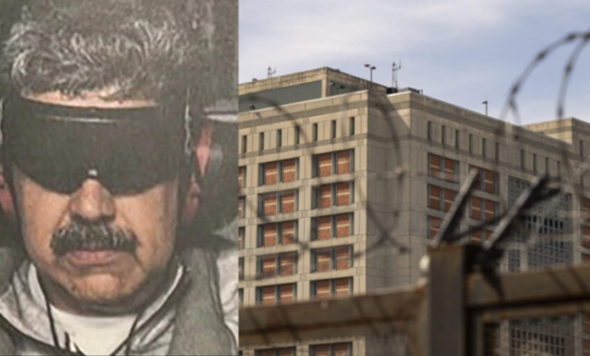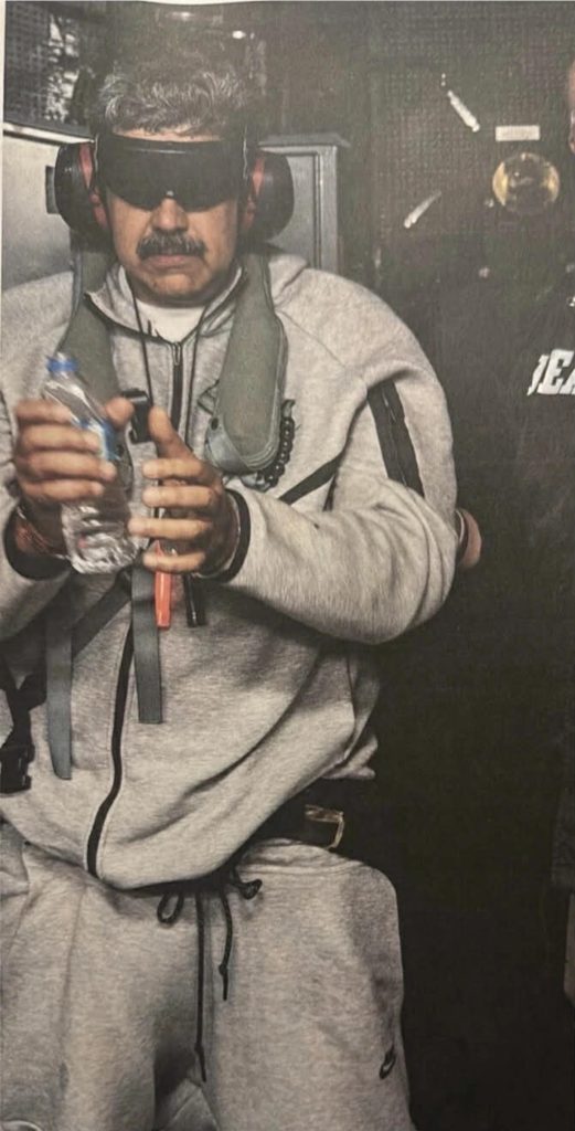 Maduro shihet me duar të lidhura dhe sy të mbuluar.