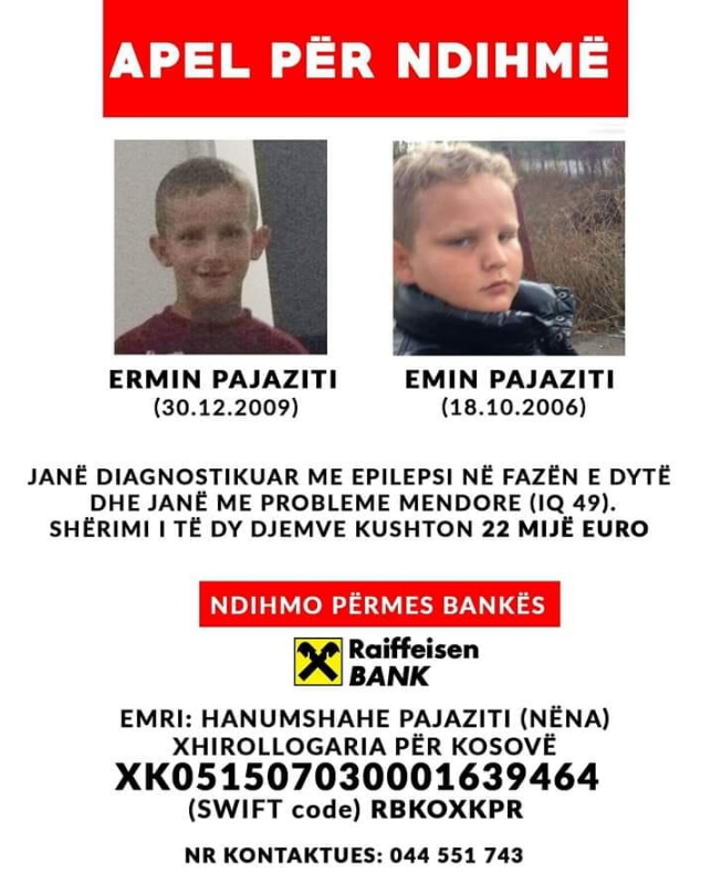 Edhe Hanumshahe Pajaziti nga Gjilani, është detyruar ta shtri dorën dhe të bëj apel për ndihmë, pasi që dy djemtë e saj, janë diagnostifikuar me epilepsi.