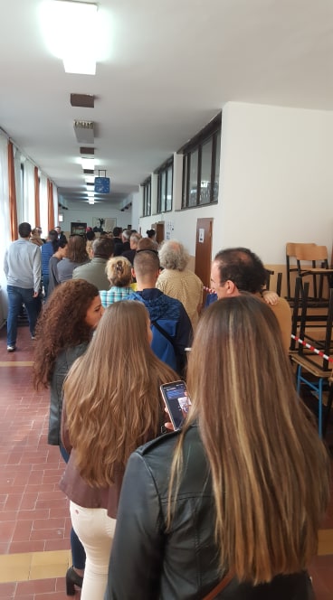 Aty vërehet një fluks i madh i qytetarëve të cilët po presin në radhë për të votuar.