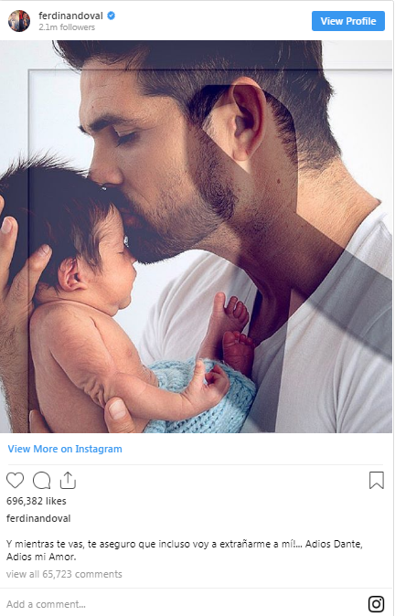 “Derisa ti u largove, të siguroj se do të më marrë malli shumë. Mirupafshim Dante, lamtumirë dashuria ime!”, ka shkruar ai, duke ia shoqëruar këtij postimi edhe një foto bashkë me djalin.