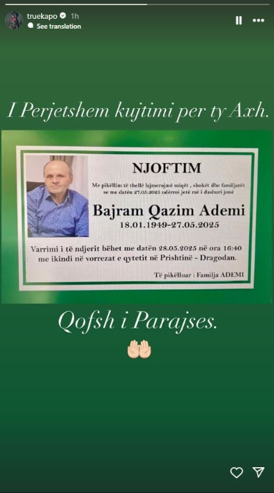 Ngushëllime të sinqerta për Capital T dhe gjithë familjen Ademi. Qoftë i lehtë dheu për të ndjerin./ORAinfo/