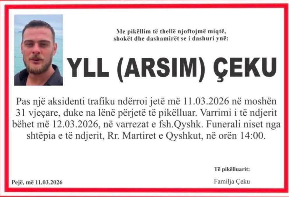 31-vjeçari, Ylli Çeku ka humbur jetën pas një aksidenti të trafikut, që raportohet të ketë ndodhur muaj më parë, transmeton Klankosova.tv.