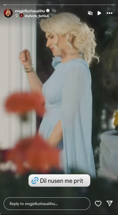 Në një postim të shpërndarë nga artistja Engjëllusha Salihu në rrjetin social Instagram, Behluli shihet duke shkëlqyer me një fustan të gjatë ngjyrë blu të hapur, që përçon elegancë dhe finesë.