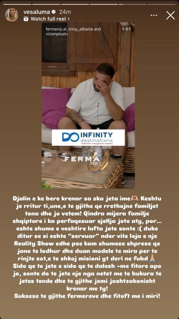 Përmes një postimi në Instagram, Vesa e ka vlerësuar maksimalisht rrugëtimin e Big Bastës në këtë reality show, duke e cilësuar sjelljen dhe qëndrimin e tij si përfaqësuese të mijëra familjeve shqiptare.