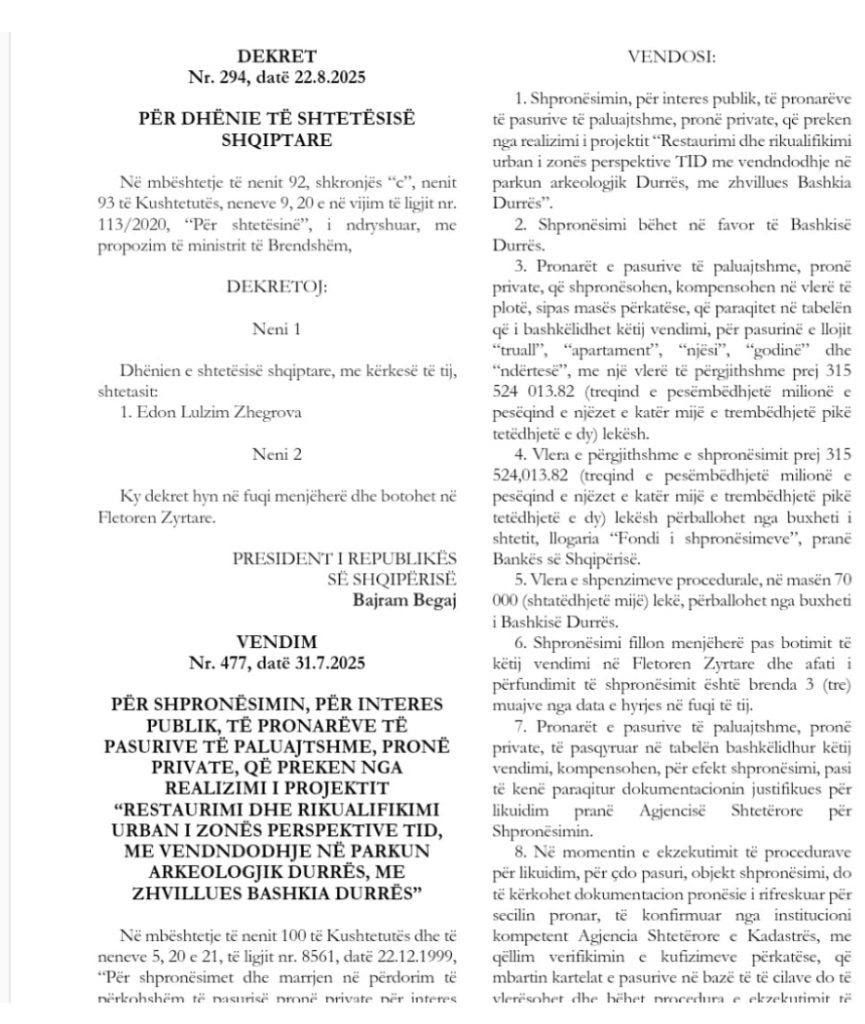 Është vet Zhegrova, i cili ka publikuar në ‘story’ të rrjetit social Instagram, dekretin e presidentit të shtetit, Bajram Begaj, për t’i dhënë shtetësinë.