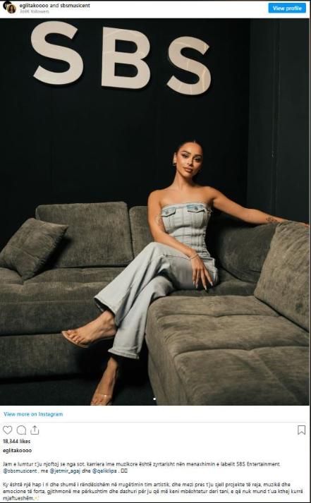 Këngëtarja e njohur shqiptare Egli Tako ka bërë një njoftim të rëndësishëm që ka të bëjë me karrierën e saj muzikore, duke konfirmuar se nga sot e tutje menaxhimi i saj profesional do të jetë nën kujdesin e një prej label-eve më të njohura në skenën muzikore shqiptare, SBS Entertainment.