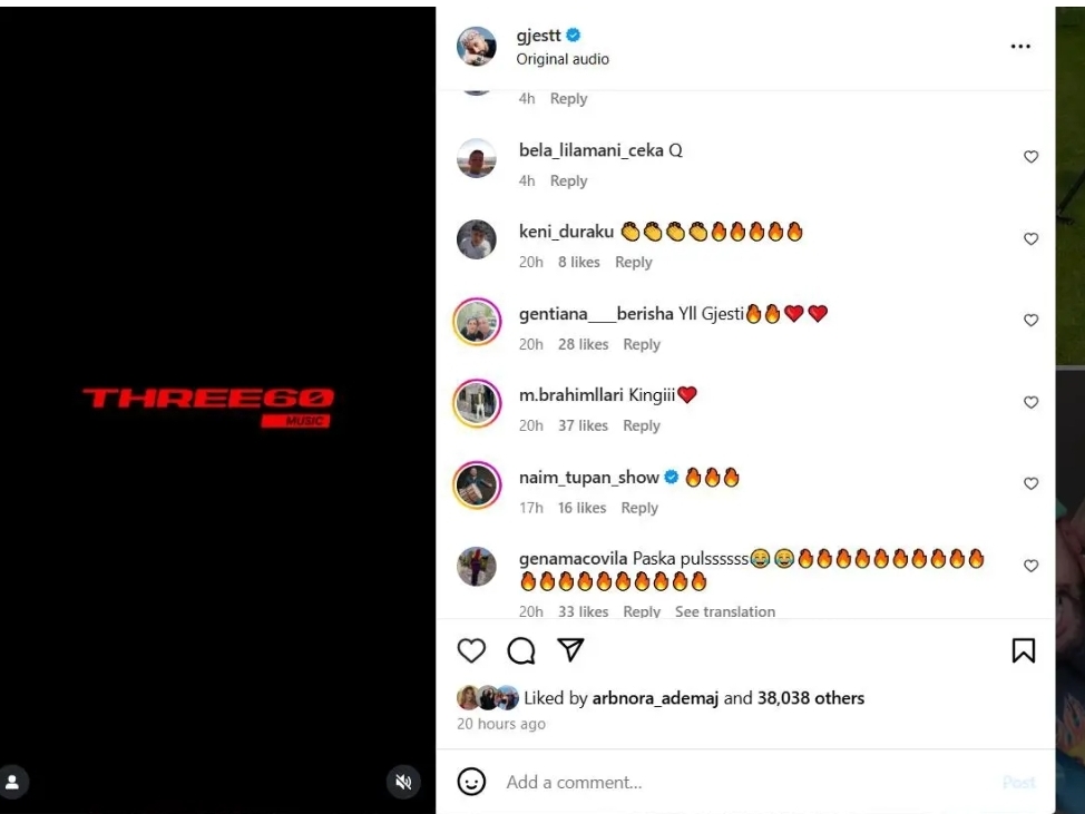 Këtë detaj e kanë vë në pah ndjekësit të cilët e komentuan faktin se Eglin nuk e ka pëlqyer postimin ku Gjesti lajmëroj se kënga tanimë është e përfunduar.