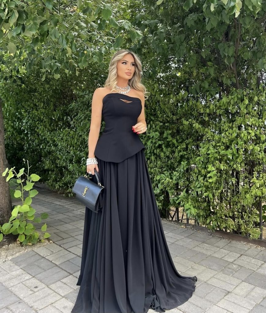 E rregulluar bukur dhe e veshur me një fustan të gjatë e me shumë stil, Engji po shkëlqen në pamje.