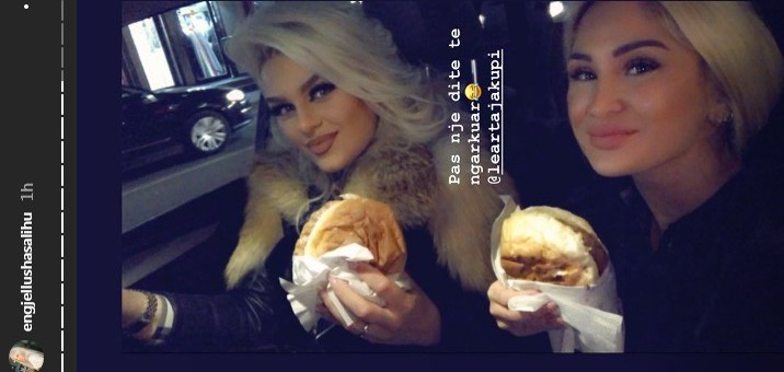 Së fundi ajo ka publikuar një foto ku shihet bashkë me Leartën në veturë, ku po hajnë hamburgera së bashku./ORAinfo/