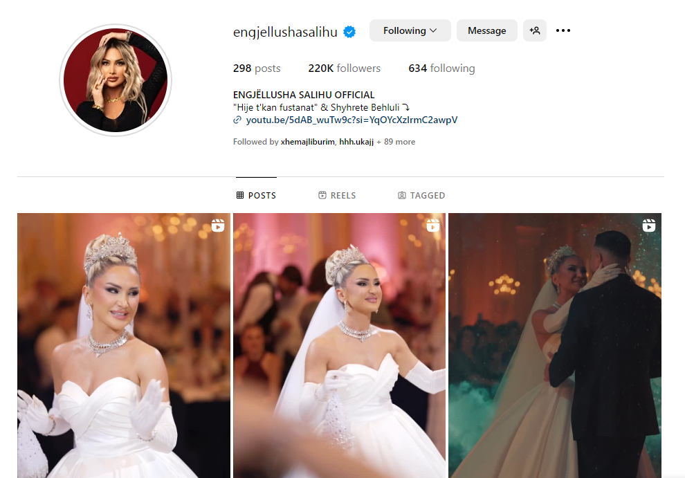 Vetëm pak ditë pasi kurorëzoi dashurinë e saj me një ceremoni përrallore, këngëtarja e njohur Engjëllusha Salihu ka vendosur t’i kthehet aktivitetit në rrjetet sociale, duke ndarë me ndjekësit çdo detaj të ngjarjes më të rëndësishme të jetës së saj – dasmës.