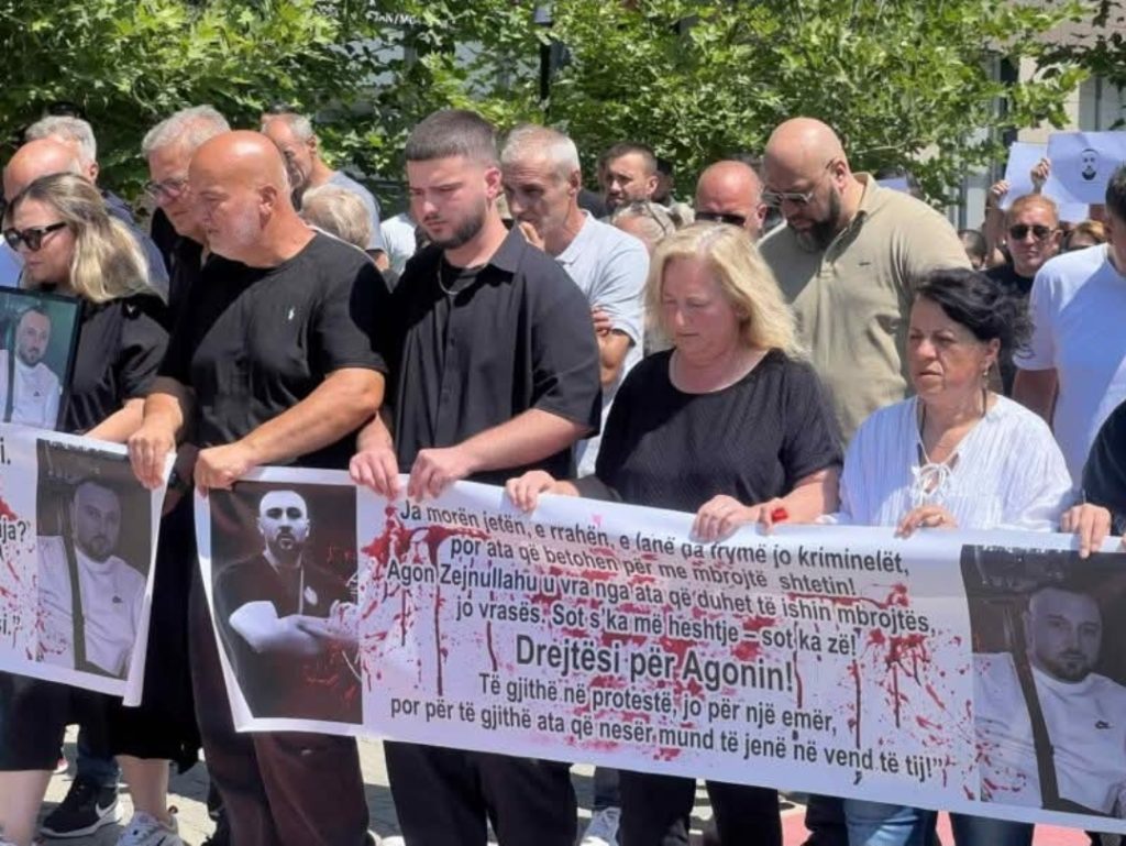 Në protestë, po marrin pjesë edhe familjarët e Agon Zejnullahut.