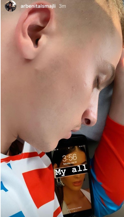 Ajo e ka publikuar një foto në të cilën shihet Fero duke fjetur ndërsa pranë e ka një telefon ku shihet fotografia e Arbenitës.