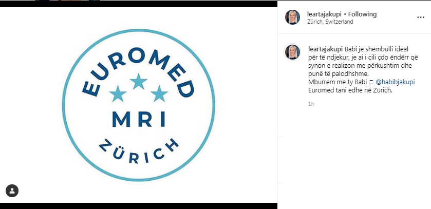 Sot, ajo ka publikuar një foto me të cilën na tregon se në shtëpinë e tyreë kanë një festë të madhe pasi spitali i babait të tij tani ka hapur një pikë edhe në Cyrih të Zvicrës./ORAinfo/