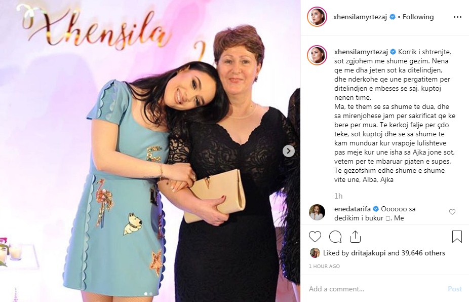 “Te gezofshim edhe shume e shume vite une, Alba, Ajka”- shkroi ndër të tjera Xhensila./ORAinfo/