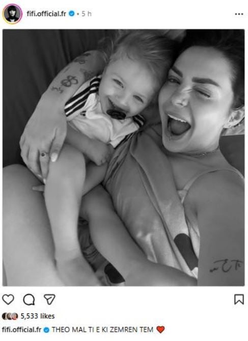 Dashuria e Fifit për Theon nuk është thjesht ndjenja instinktive e një nëne, por është një lidhje e thellë emocionale, që ajo nuk ngurron ta shprehë publikisht. Përmes këtij postimi, ku shkruan “THEO MAL TI E KI ZEMREN TEM”, ajo i ka dhënë publikut një mesazh të qartë: Theo është qendra e botës së saj, burimi i gëzimit dhe forcës, dhe motivimi më i madh për të ecur përpara.